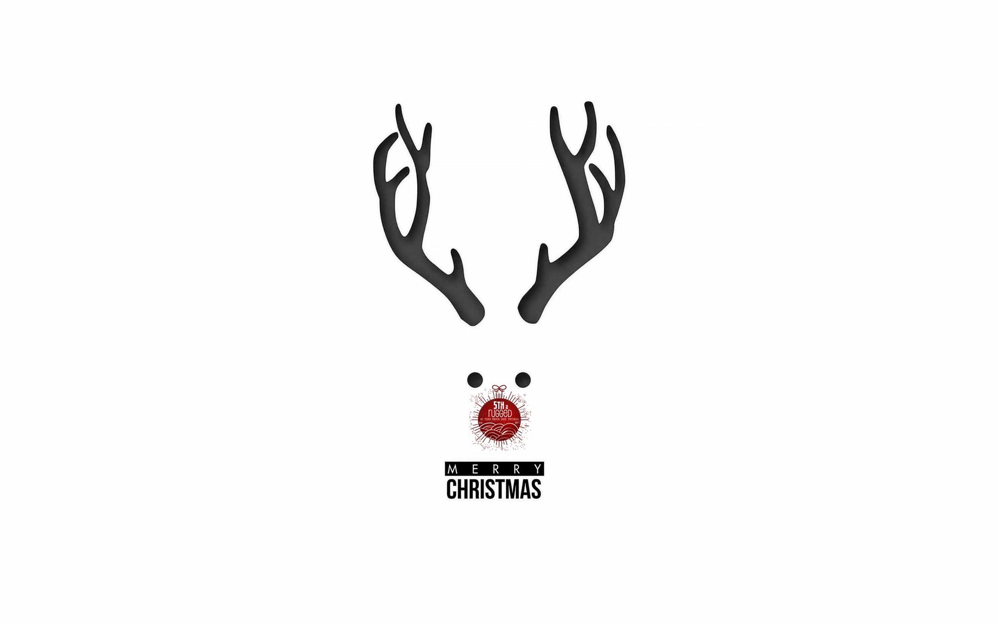 Minimal holiday artwork featuring reindeer antlers framing a red 5th & Rugged ornament with Merry Christmas text on a clean white background